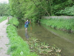the changes in river characteristics with distance downstream. Depth and width of channel were measured at 24 gauging points taken at regular intervals downstream. Can you see any downstream changes in river characteristics from the photographs? Look for meandering, increasing width and depth of channel. The photographs begin upstream at guaging point 1. At point 12 a tributary joins the main stream. |